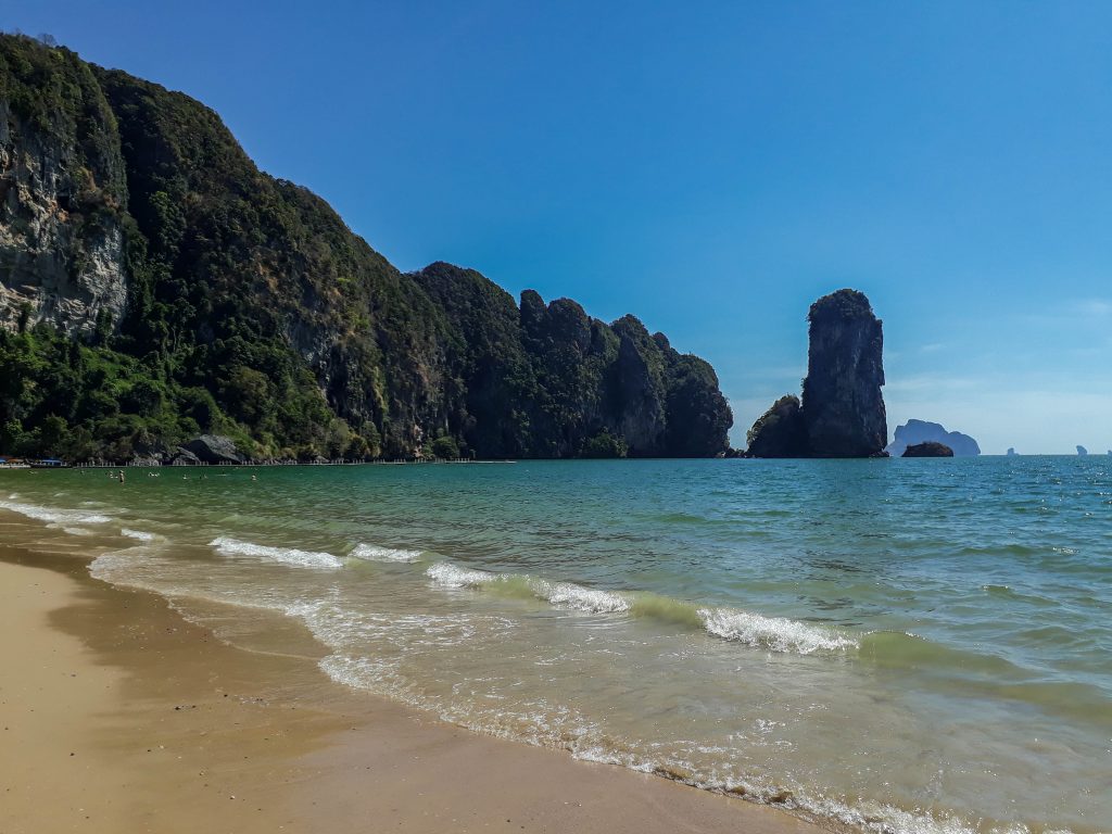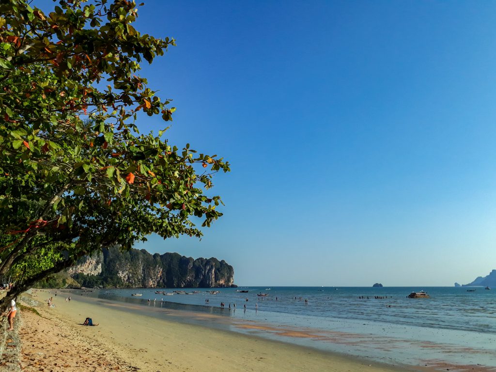The beach spans nearly 1 km in length and is dotted with longtail boats as it’s the main departure point for island hopping around Krabi. The main beach area can feel a bit crowded and loud due to the constant boat traffic, so I recommend heading over to the eastern end if you’re looking for an empty strip of sand. The beach here is much nicer and you can grab something to eat from the neighboring restaurants or food stalls and enjoy your meal directly on the beach.