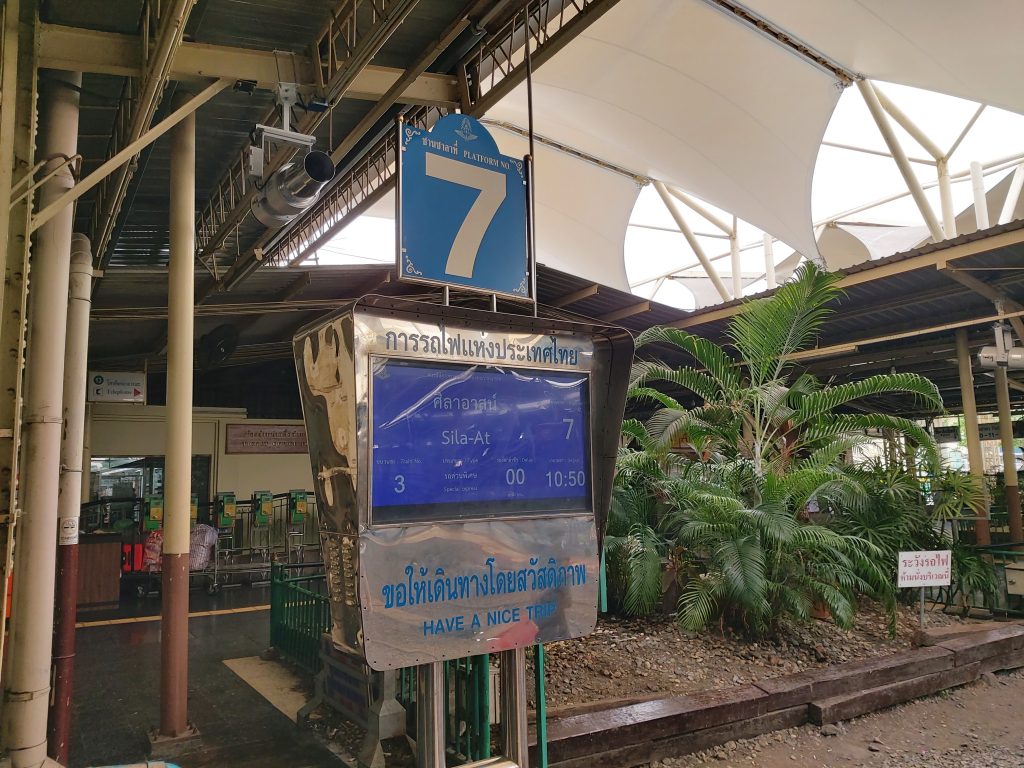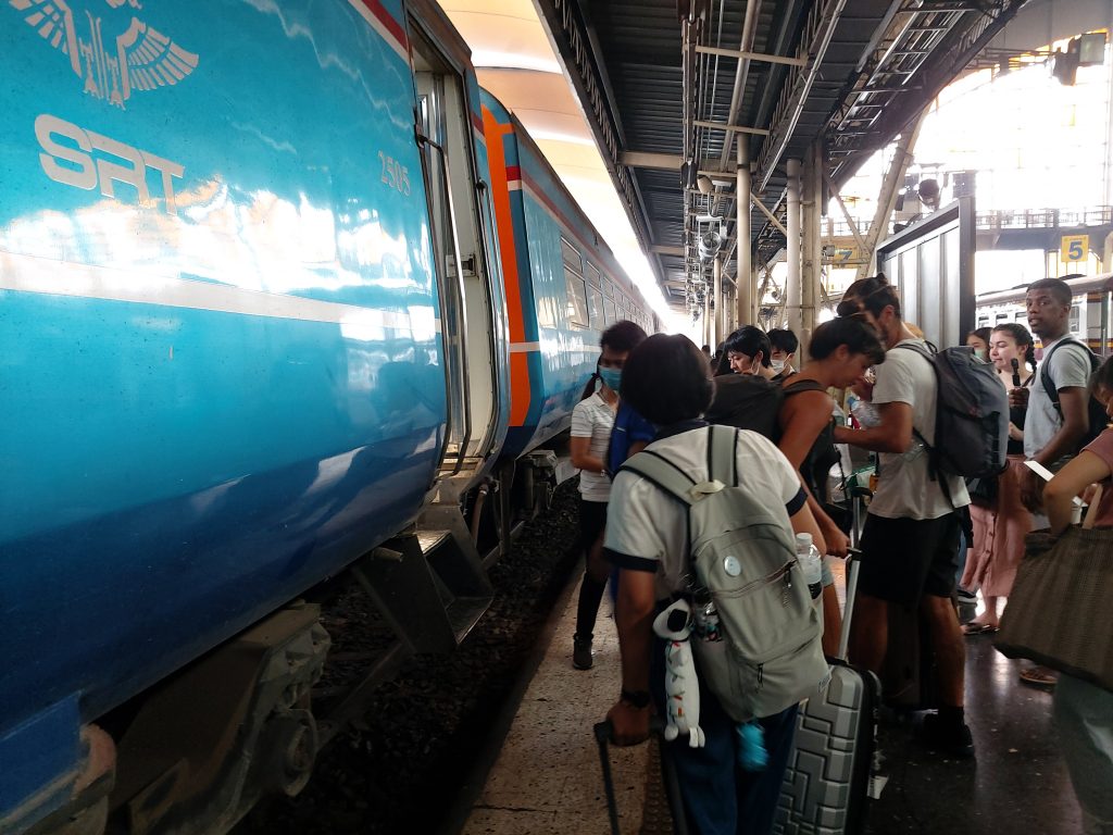 Residents as well as backpackers in their thirties crawled out of rickety carriages, breathing in the hot humid Bangkok air. Needless to say, there was no air conditioning on the super long-distance platforms that are partly open-air. I’d found mine quickly because there are visual platform displays at the start of each track.
