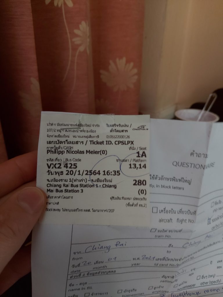 Collecting my ticket at Chiang Rai’s bus terminal 1