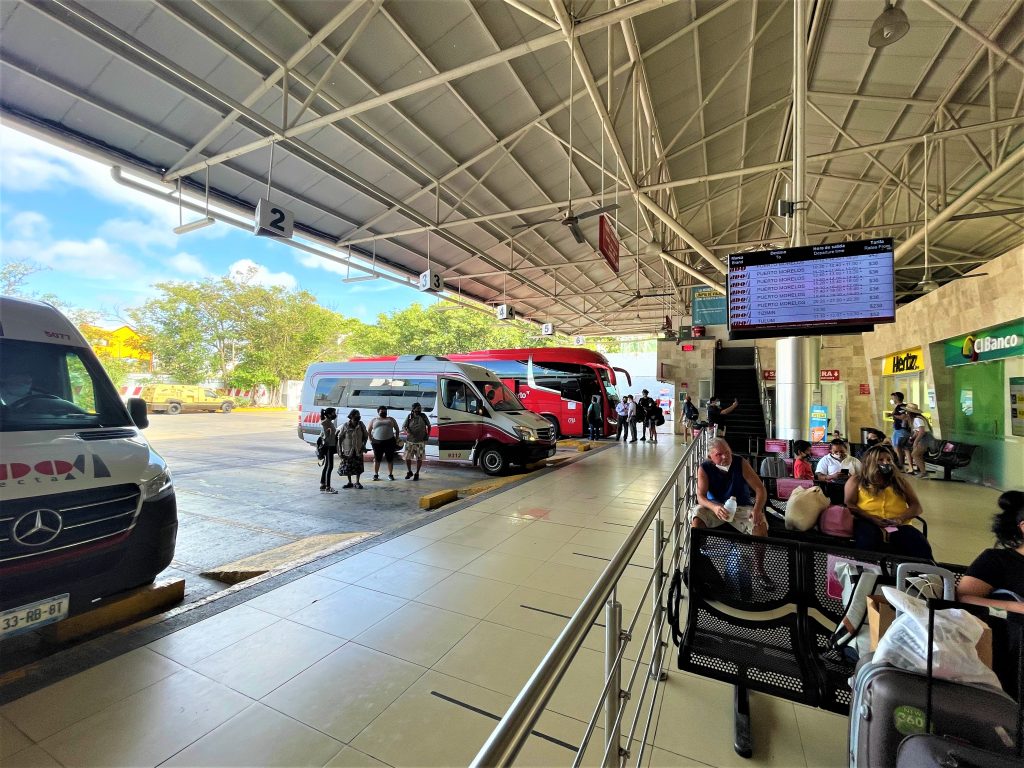 Playa del Carmen’s ADO bus station has snack shops, a restroom, and ATMs. There are a decent number of seats available in the open-air waiting room, and large screens will advise you of upcoming departures and bus platform numbers.