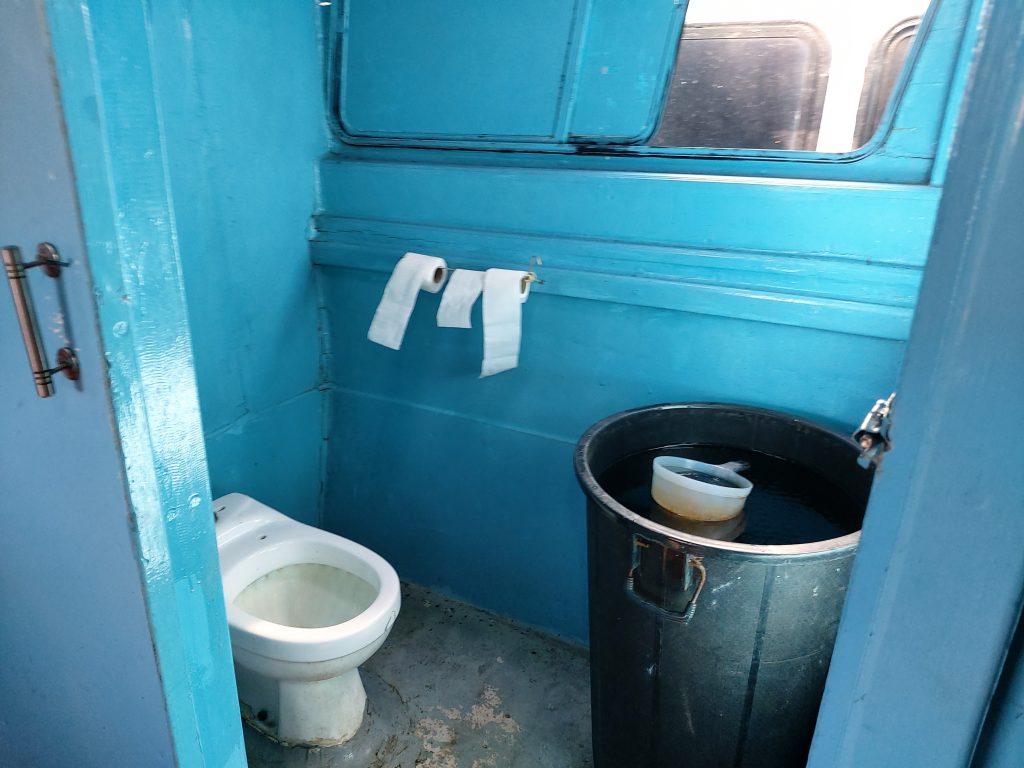 There were plenty of life jackets available, piled up behind the last row of seats, and I spotted even a fire extinguisher. Close to the air-conditioner that read “26 degrees” and felt like 19 degrees (Celsius), I noticed some cracks in a window the shape of a spider that had probably occurred due to thermal gradients.